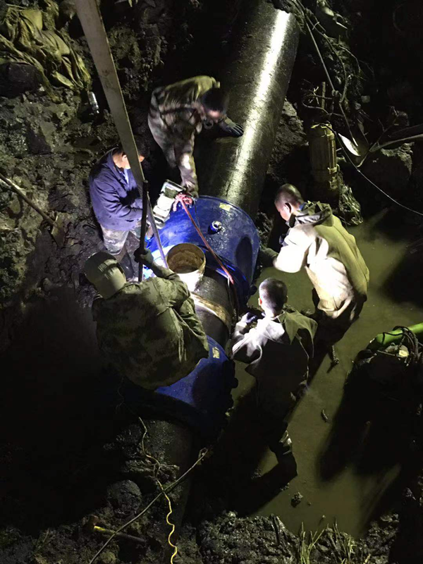 由于管道破裂處位于直徑約10米的淤泥水坑中,地勢(shì)環(huán)境非常惡劣,給搶修工作帶來(lái)了極大的難度。維修人員首先對(duì)施工地點(diǎn)進(jìn)行圍堰、降水。為防止污水倒灌進(jìn)入管線,工作人員一邊用四臺(tái)大功率水泵同時(shí)抽出圍堰內(nèi)的水,一邊控制管線泄水壓力。由于管線大,水量多,經(jīng)過(guò)4個(gè)小時(shí)的連續(xù)降水作業(yè),管線斷裂點(diǎn)才逐漸顯露出來(lái),工作人員立即對(duì)破裂部位進(jìn)行更換。夜晚涼意不斷,坑內(nèi)泥濘不堪,維修人員忍著腥臭的淤泥,不顧蚊蟲叮咬,埋頭苦干,與時(shí)間賽跑,他們不怕臟不怕累,全力以赴按下?lián)屝薜摹翱爝M(jìn)鍵”,跑出了“加速度”,經(jīng)過(guò)全體維修人員的連夜奮戰(zhàn),于當(dāng)晚23時(shí)搶修結(jié)束,23:30恢復(fù)供水,當(dāng)晚經(jīng)對(duì)西山坡6號(hào)泵房取水樣化驗(yàn)水質(zhì)完全達(dá)標(biāo)。