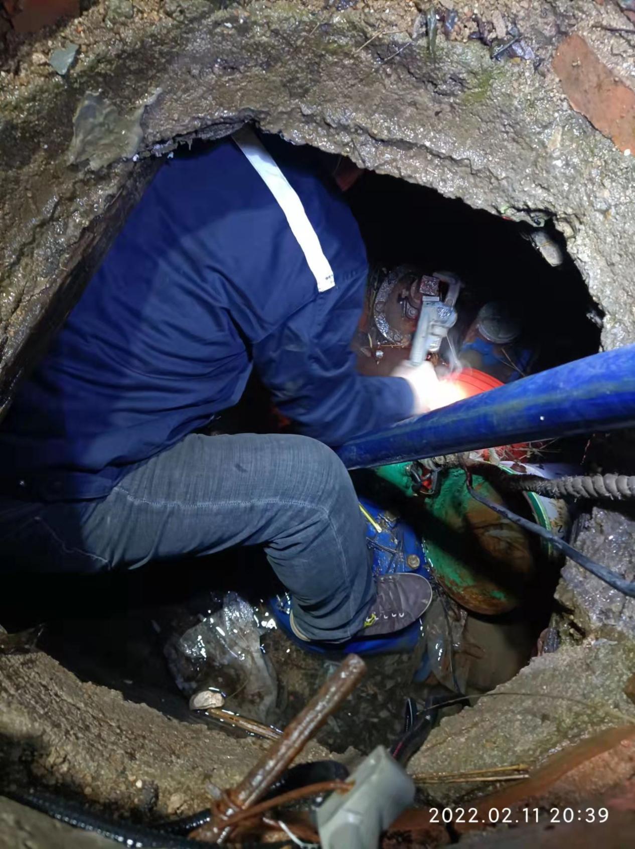 最強(qiáng)硬核搶修隊(duì)伍,實(shí)力擔(dān)當(dāng)。2月16日下午17點(diǎn)47分,工程公司接到工單,位于騰揚(yáng)嘉苑對(duì)面建筑安裝公司附近發(fā)現(xiàn)漏水現(xiàn)象。搶修人員立即趕往施工現(xiàn)場(chǎng),在勘察現(xiàn)場(chǎng)具體情況的同時(shí),對(duì)現(xiàn)場(chǎng)拉起警戒線。經(jīng)勘查初步判斷此處漏損管線為DN200管線。搶修過程中采用鉤機(jī)、炮錘等對(duì)路面進(jìn)行開挖,挖出一條長(zhǎng)4米,寬1米,深2.5米左右的溝,因壓力關(guān)系,爆裂處噴射近5米高水柱,維修人員隨后采用水泵進(jìn)行抽水,待具備施工作業(yè)條件時(shí),工作人員用H200卡具進(jìn)行固定,整個(gè)搶修用時(shí)約3小時(shí),于晚9點(diǎn)搶修完畢。他們專業(yè),他們頑強(qiáng),他們無畏,他們敢拼,他們是一支名副其實(shí)的的硬核搶修隊(duì)伍。