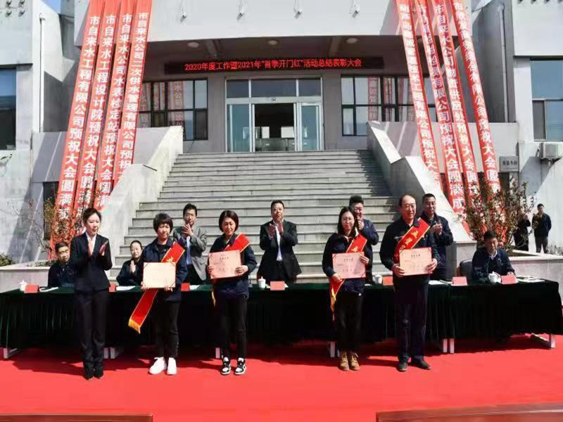會上,公司經(jīng)理李文生代表領(lǐng)導(dǎo)班子做2020年度工作報告,總結(jié)2021年首季開門紅工作,部署2021年工作;副經(jīng)理馬旭宣讀了表彰決定,對獲獎集體和個人進(jìn)行頒獎,隨后,獲獎集體和個人代表分別發(fā)言。表彰結(jié)束后,公司經(jīng)理李文生分別與生產(chǎn)、營業(yè)及自來水工程有限公司等單位簽訂2021年經(jīng)營指標(biāo)責(zé)任狀。