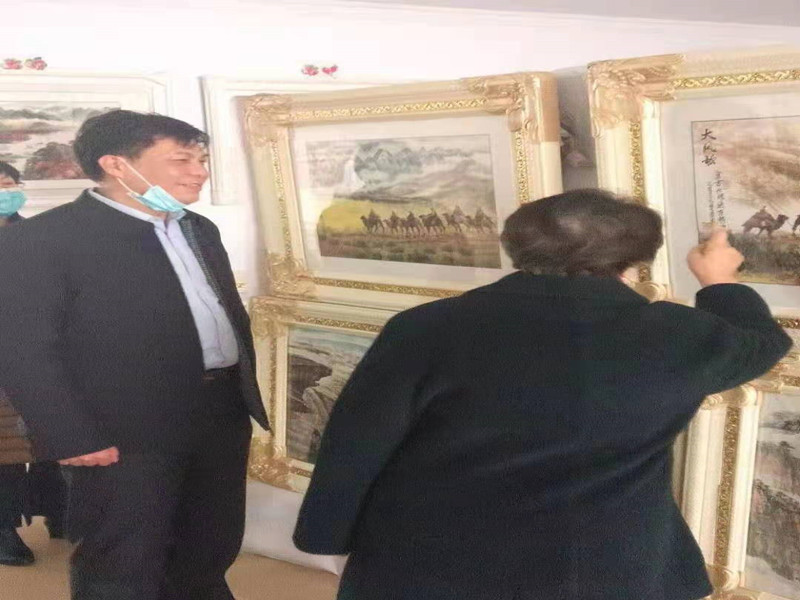 參觀中公司黨委張書記與作家張鳳蘭老師就一些作品進行了親切交流,并問候老人家近況,當?shù)弥獢[放展品的家里存在用水難題時,現(xiàn)場辦公聯(lián)系了公司營業(yè)分公司幫助解決自來水問題,保證展覽地點的用水,老人家表示非常感激。
