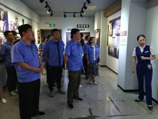 活動(dòng)的第一站是沈陽(yáng)審判日本戰(zhàn)犯特別軍事法庭舊址。據(jù)講解員介紹,它是新中國(guó)在1956年審判日本戰(zhàn)犯的法庭遺址。陳列展覽包括文字、照片、史料,文物、多媒體演示等展覽形式。展覽共分為“審判背景” “審判準(zhǔn)備”“莊嚴(yán)審判”“尾聲”等四個(gè)部分,全面展示了日本戰(zhàn)犯在沈陽(yáng)接受審判的整個(gè)過(guò)程,重現(xiàn)了1956年中國(guó)政府成立特別軍事法庭,對(duì)日陸軍中將師團(tuán)長(zhǎng)鈴木啟久、偽滿洲國(guó)國(guó)務(wù)院總務(wù)長(zhǎng)官武部六藏等36名戰(zhàn)犯進(jìn)行審判的歷史場(chǎng)景。黨員們?cè)诂F(xiàn)場(chǎng)莊嚴(yán)地舉起右拳,面對(duì)黨旗宣誓,重溫入黨誓詞,一起回顧入黨初心。宣誓結(jié)束后,隨同講解員參觀了各個(gè)展廳及復(fù)原的公審日本戰(zhàn)犯場(chǎng)景蠟像,觀看了公審日本戰(zhàn)犯的影像紀(jì)錄片,這場(chǎng)令中國(guó)人民揚(yáng)眉吐氣的審判,讓大家深刻感受到了中國(guó)對(duì)待日本戰(zhàn)犯的寬大胸懷,對(duì)祖國(guó)的敬佩之心油然而生。