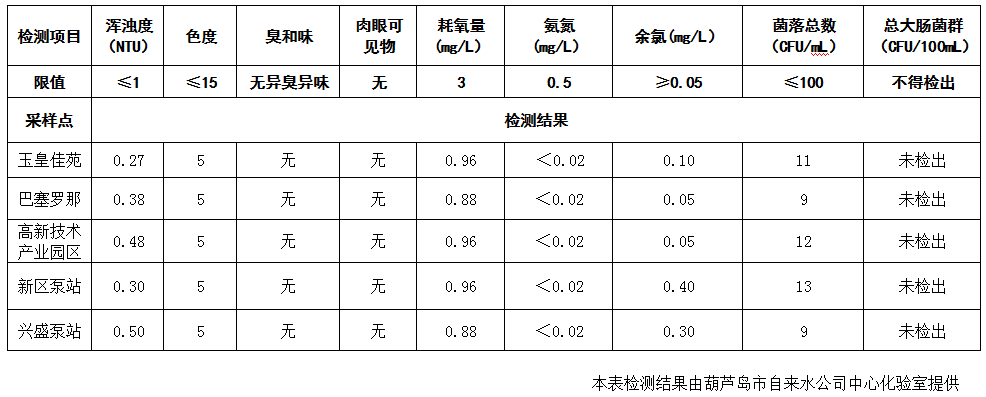 2017年9月13日葫蘆島市城市供水管網(wǎng)水質(zhì)信息