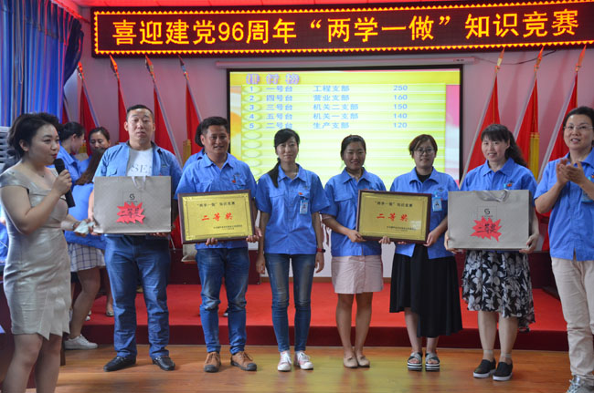 此次競(jìng)賽內(nèi)容包括《黨章》、《廉政準(zhǔn)則》、《習(xí)近平系列重要講話》等知識(shí),公司5個(gè)黨支部集體參加比賽,經(jīng)過緊張激烈而精彩的角逐,工程公司支部獲得一等獎(jiǎng),機(jī)關(guān)二支部、營(yíng)業(yè)支部獲得二等獎(jiǎng),機(jī)關(guān)一支部、生產(chǎn)支部獲得三等獎(jiǎng)。