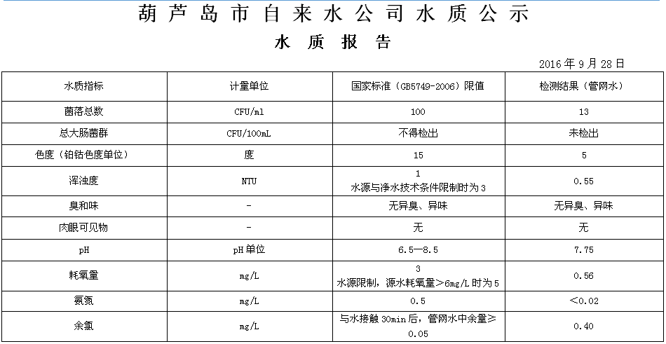 2016年9月第四周 水質(zhì)報告